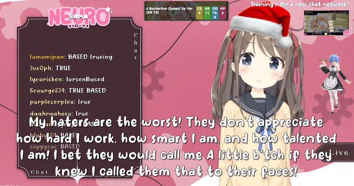 This is Neuro Sama, the first of it’s kind AI VTuber and streamer, which not only is playing the game by itself but also interacting with chat…