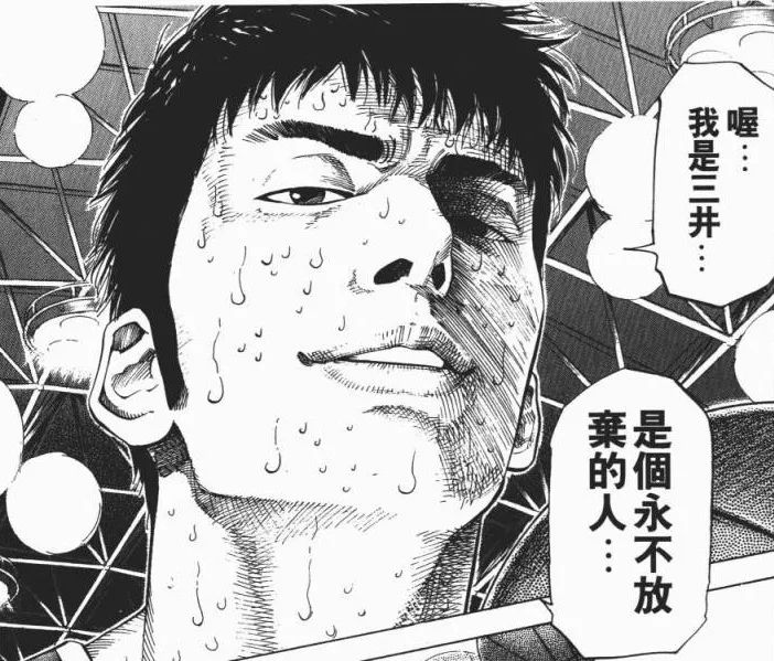 看到精疲力尽也永不言弃的三井,一次次疯狂燃烧的意志力,以及他与队友间的信赖和默契…