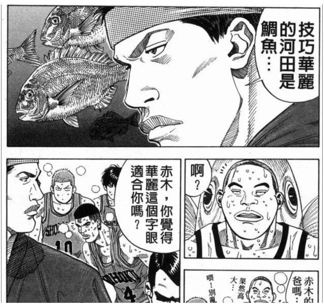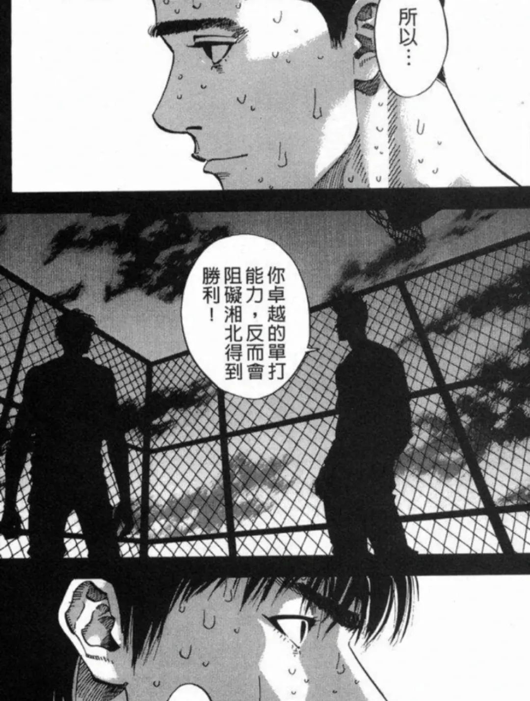 看到冒着大雨赶到球场,用独有的方式,唤醒迷途赤木的鱼住: