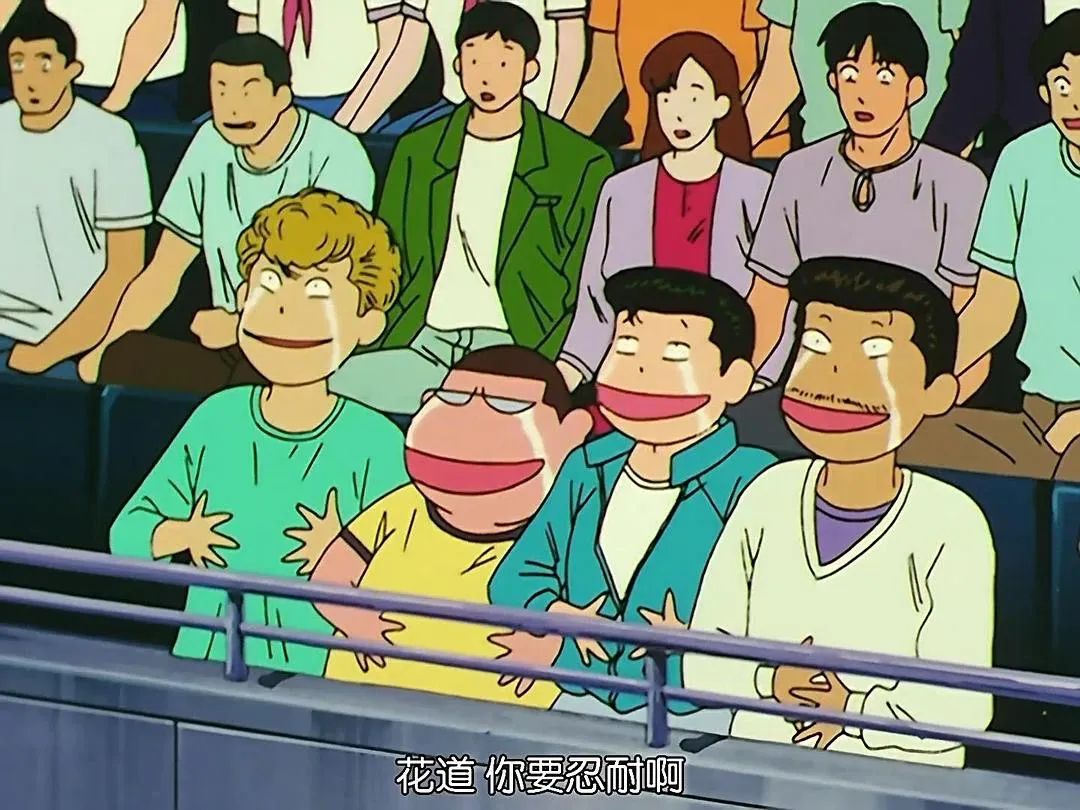 樱木的负伤与顽抗,将剧情推至高潮。湘北打不死的表现,也打动了对手的死忠球迷,他们开始为湘北呐喊。
