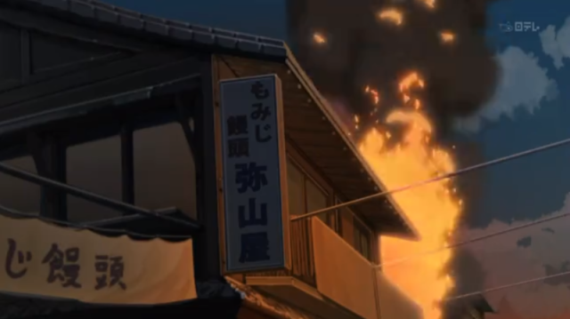 不过,既然是出现在《名侦探柯南》内的名景,那就是必须做好一定的觉悟。可以看到,这家以红叶馒头闻名的岩村もみじ屋,在这一集故事内容却是遭到烧毁的命运,这让现实中的店家也特别将「事故现场」截图下来,告诉游客「我们的店,在《名侦探柯南》这一集中烧掉了啊啊啊啊!( °Д °)」