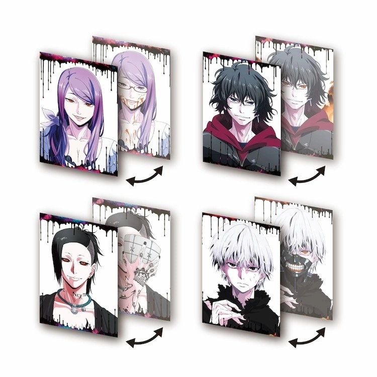 来场特典是以石田翠老师绘制新图制成的光栅卡片,不同角度可以看到角色以不同姿态出现;特典将分为四梯次发送,数量有限送完为止,10/21~10/30发送“神代利世”款、10/31~11/10 发送“雾嶋绚都”款、11/11~11/20 发送“歌”款、11/21~12/1 发送“金木研(觉醒后)”款。至于大阪场的特典图样与发送时程将于日后更新。