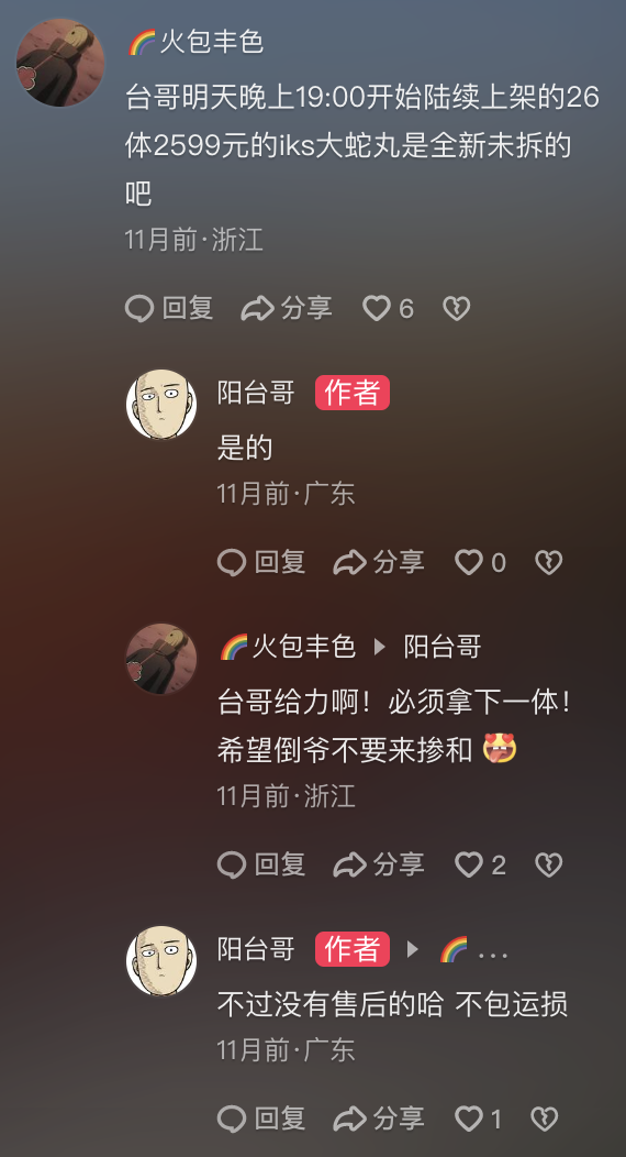 中国最大的“手办网红”,再见竟是「法治新闻」?! 周边 ACG宅 · 2025年3月3日 9:24 · 736阅读 二次元传来噩耗。 不久之前,上海广播电视台《东方110》法治栏目,推出了一则知名手办区博主被抓捕专题报道。消息火速传遍了圈子,经视频信息多方对比,玩家们发现,报道中被打码的犯人“徐某”, 真实身份竟是抖音500多万粉的超级网红,已断更将近1年的“阳台哥”! 主播不是退网,是落网了😢。 最后一次更新是2024年3月 纪念《龙珠》作者逝世 理由是“生产、销售盗版产品”。现在连人带团伙,整个窝都端了,涉案金额高达6000万元!曾与他合作的代工厂、为他做设计的表弟,都将面临牢狱之灾。 其实早在9个月以前,手办圈子就已经有阳台哥“伏法了”的传言。 大批买家涌到抖音评论区、店铺客服处,恐慌的询问定金能不能退? 但彼时客服安抚:台哥只是配合调查,不会有事的,定金当然可退。眼见团队还在运转,定金也确实能退出来,许多人便放下心来。然后又过了一段时间,阳台哥还迟迟没回公众视野,再去问客服,却发现客服团队也消失了。 ——这下真成“糊涂账”了!一大堆玩家钱陷了进去。 – 然而,令人惊讶的是—— 即便都这样了,阳台哥口碑,却依旧爆炸💥性的好。 作为一个“奸商”、“假货盗版贩子”,观众无不扼腕叹息他的离去。甚至拿电影《我不是药神》类比,形容阳台哥是二次元版《我不是雕神》。 怎么当事人都认罪了,观众还在替他“伸冤”? “阳台哥”之所以叫“阳台哥”,是观众赋予他的名字。 早年抖音刚崛起的时候,阳台哥还只是个普通的手办爱好者,唯一特点就是「富」。随随便便什么名贵手办,都能轻易拿出一大堆,摆在自家宽大的阳台上拍摄,蔚为壮观。 出乎他意料,这效果超级好。 随便展示下自己的藏品,一条视频就能有几十、上百万的点赞。最巅峰时1天就能涨粉45万,因为有这阳台做标志,观众称他“阳台哥”。后来他自己索性也叫这名字。 短短3年,就成长手办头部博主。放眼全网,几无一合之敌。 朴实无华富哥们的天宫一角 当有一定粉丝后,一些广告开始找上了他。有普通品牌,也有手办工作室给他寄产品。多的时候一月几十条,报价不菲。比他本职工作挣得还多得多。 后来,有了持续的耕耘,阳台哥时常能见到,有观众向他咨询手办价格,然后听到数字惊呼:“太贵了!”望而止步。 还有些同样富哥们的,感慨市场上缺少符合他们期待的产品。阳台哥你这么大影响力,干嘛不自己开个设计生产线呢?做点定制化手办,我们都愿意花钱买? 这确实是个机会。 阳台哥自小家境优渥。小学4年级,就玩起了需要自己上色、涂装的灰模手办,深沉热爱其中;长大了,他每年都会花几十、甚至上百万元,到手办收藏上。出于兴趣,他以前还会做手办评测,理论和实践都是天花板级别。 彼时国内手办文化已快速崛起。但有两种情况同时存在: 1,正版手办价格高昂。 通常来说,一款正版手办从设计到量产,会经历漫长而严格的制作和审查周期。制作成本就不菲了,还要付给版权方一大笔版权费。再加上生产商大多在海外,造成了很多圈外人不能理解的:“一个塑胶小人,凭什么卖上千块?”的广泛质疑。也阻挡了一大批爱好者入坑。 2,国内盗版横行,但良莠不齐。 其实以中国的工业能力,想要什么都生产出来。但早年大多是小作坊,直接盗版官方翻模,设计敷衍,做工、材料也很难评,形成了特有的“祖国版”文化——现在电商一搜还一大堆。以超低价格吸引眼球,但质量也很拉胯。 当然,国内也并不缺正经手办的工作室,许多本就是官方代工商。但整个市场劣币驱逐良币,一方面他们无法像正版授权品一样,以高价攫取超额利润,一方面价格也无法与低质厂商竞争。且随着低质产品充斥市场,玩家对祖国版的好感也消失殆尽。 祖国版手办 而阳台哥就是能同时解决这两件事的人。 自他开始做手办销售,卖的就是「好哥们买得起」的手办。自己组建设计团队,原创造型,或根据官模修改高仿,找靠谱的工厂制作,全程把控流程。最终产品几乎不逊于官方手办,某些甚至能更优一些。 售价上,比如一款手办出厂价格在300元左右,阳台哥自己利润留200元,再加一些营销费用,最终售价600多块。粉丝趋之若鹜,一抢而空。因为即便这样,售价也只有官方正版的十分之一。 与此同时,阳台哥销售态度还无敌的好。 创造性的开启了,「定金无理由随时退」和「到货48小时无理由退款」,两大杀招。直接秒杀大部分同行,逼迫其他店铺也向他看齐。 你可以这么理解——他改变了模玩圈的游戏规则。而这改变,是纯对玩家有益的。 不难想象为什么玩家都喜欢他。 再加上平日抛头露面的阳台哥,从来都以平易近人的态度。四处宣扬对手办、对二次元的热爱,真心喜欢这个圈子。还有多家媒体,采访阳台哥作为“优秀青年代表”。 那是阳台哥的巅峰,但隐患也正埋藏其中。 在同行口中,阳台哥绝不是受喜欢的人。这是为什么他刚传出消息倒台,很多人就急不可耐踩一脚。 阳台哥进狱风采访 满满一屋子手办,是阳台哥吸引粉丝的流量密码。这是别人没法学的。 阳台哥自述,他最早拍手办火的那间阳台,是他自家200平的大房子,摆了大概价值400万的手办,塞不下了,没地方落脚。于是他又买了栋别墅,专门用来摆手办。现在别墅还没装满,但他被抓了。 随着名声越来越大,阳台哥常遭遇同行的