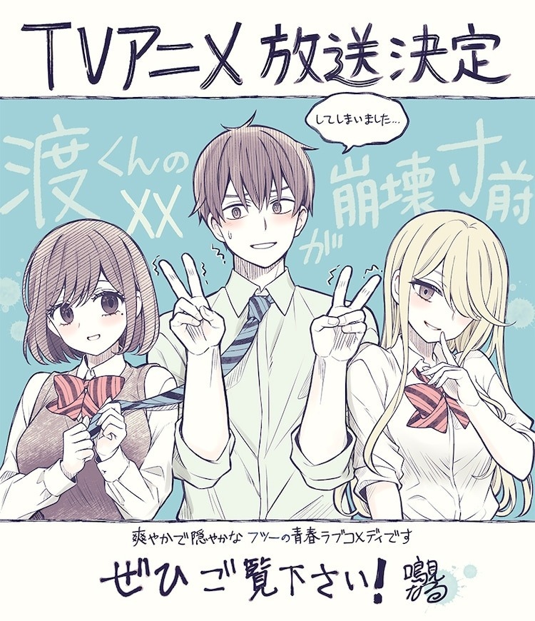 鸣见奈留原作漫画改编动画《渡同学的××濒临崩坏》(渡くんの××が崩壊寸前)宣布将于 2025 年 7 月开播,同时发表概念视觉图、制作团队和主演声优阵容。