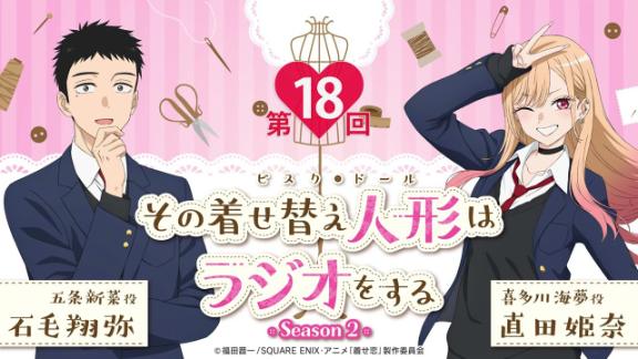 由CloverWorks制作,改编自福田晋一同名漫画的TV动画《更衣人偶坠入爱河》(その着せ替え人形は恋をする)第二季正在热播中。作为动画的官方衍生节目,广播剧《那个换装人偶会做广播 Season 2》于今日(2月27日)发布了第18回,也是第二季的最终回节目。本次节目久违地迎来了两位主角声优——喜多川海梦役的直田姬奈与五条新菜役的石毛翔弥共同主持,为听众带来充满欢笑与感动的收官之作。