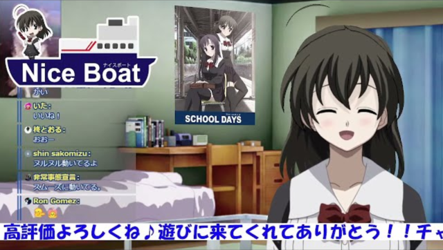 而西园寺世界 VTuber 出道过程十分成功,可以看到还沿用当时动画世界房间的背景,左边还放上经典的「Nice Boat」图案。