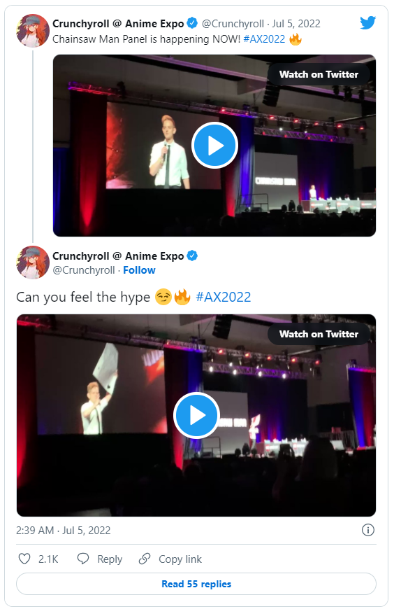 而之所以并没有在今日的Anime Expo 2022,发布《链锯人》正式预告的原因,主要是因为他们的确并不打算在本次动漫发表会中公开,而是预计于接下来于8月举行的Crunchyroll Expo 2022来发布更进一步的详细资讯,为此这也让现场轰动、网路上躁动的漫迷粉丝们也不禁备受期待。
