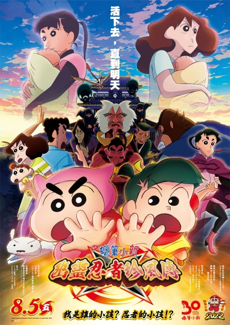 《蜡笔小新》30 周年纪念电影《蜡笔小新 幽灵忍者珍风传》将在暑假以中日文版同步上映,这次的剧情重点聚焦在小新的出生谜团,以及突然造访野原家的神秘女忍者「千代女」以及少年「珍藏」等人身上,导演则是制作过《蜡笔小新》史上最高票房的《我的搬家物语 仙人掌大袭撃》的桥本昌和,日文版配音更请到前 AKB48 成员「川荣李奈」负责女忍者「屁祖隐千代女」的配音,还有日本知名搞笑艺人「原市二人组」在片中惊喜登场。