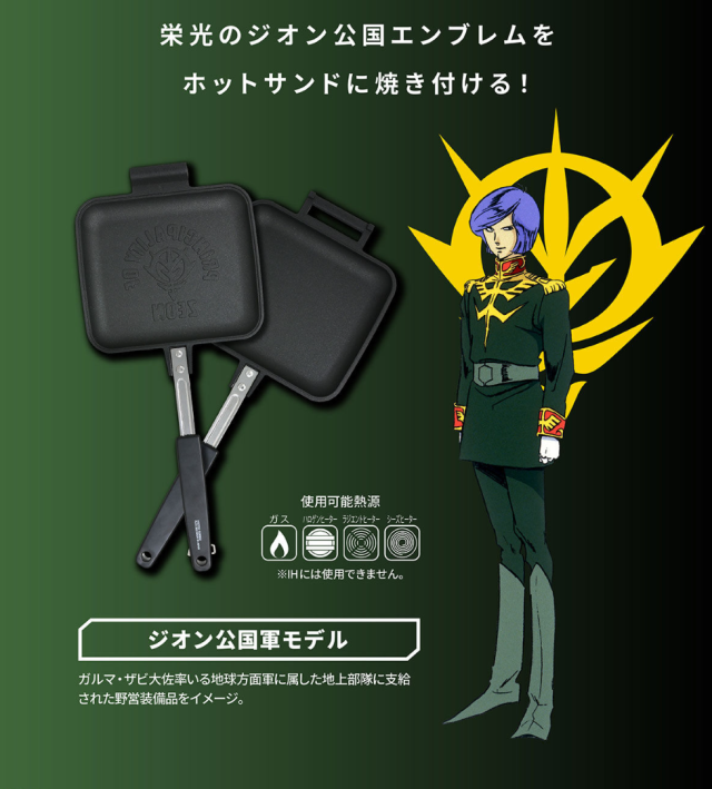 热爱吉翁军的钢弹粉丝有福啦 ! 日本万代近日宣布将推出《机动战士钢弹》吉翁军军徽热压吐司锅,让爱吃热压吐司又想自己动手做的朋友可以自己制作出吉翁军专属的美食料理,让钢弹粉能够在生活上也享有吉翁军荣耀的风格。售价为 6,050 日元,目前可于日本万代 PB 网站订购。