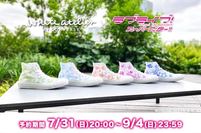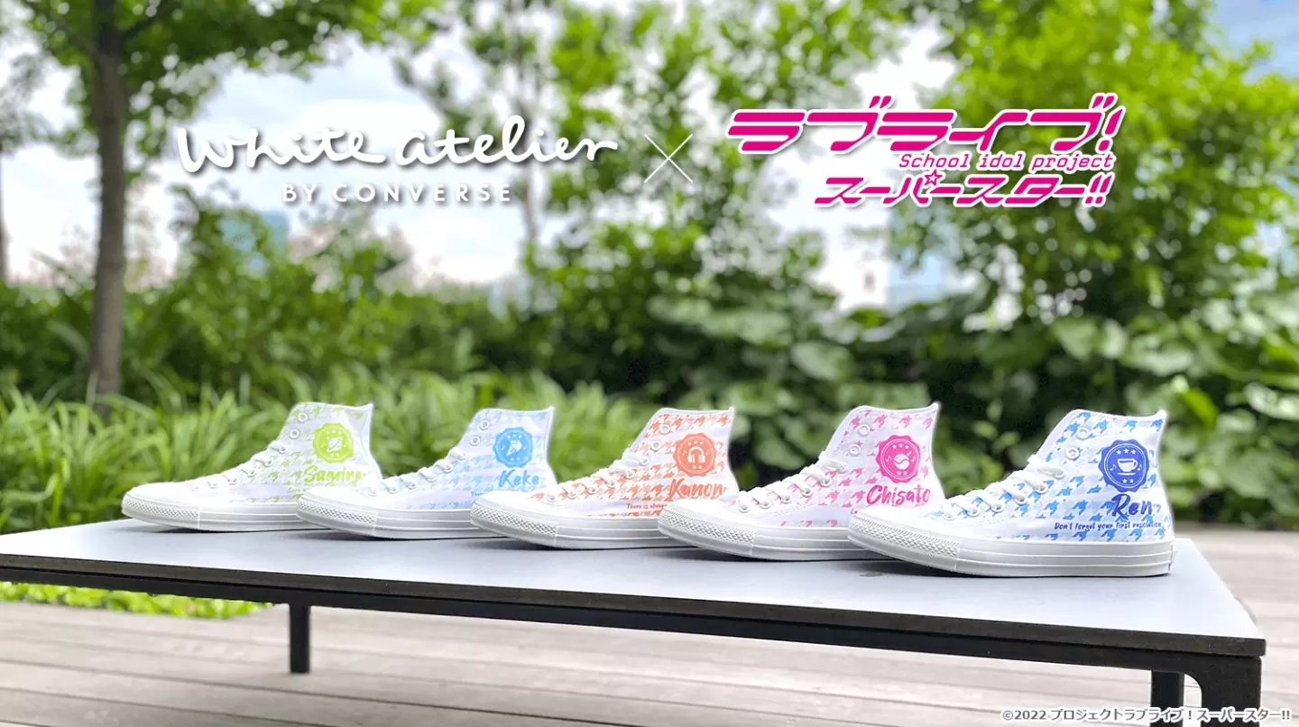 电视动画《LoveLive!SuperStar!!》与 White atelier BY CONVERSE 推出以剧中团体「Liella!」一期生五位角色为概念的设计款帆布鞋,目前正在接受预订中,时间到 9月4日 日本时间 23:59 止。