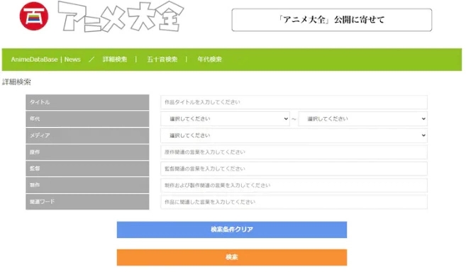 本资料库自 2021 年 10 月 22 日的「动画之日」开始,开放给业界相关人士试用,经过各种测试与更新,终于要在今天公开给一般大众使用。「动画大全」目前登录了截至 2022 年 7 月底为止所释出的动画作品,约有 15000 个条目,可以使用作品名称搜寻、年代搜寻、五十音搜寻、关键字搜寻等功能。