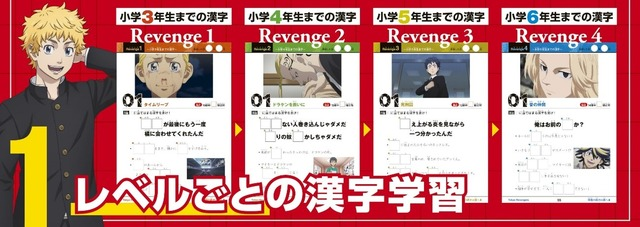 内容主打各年级层学习的汉字,以《东京复仇者》的故事主题来教导汉字的学习过程,让小学生简单易懂并提升学习意愿,以复仇(リベンジ) 的字义改为「复习」,让他们在课后之馀还能够将相关知识吸收,作为有效的课外读物。