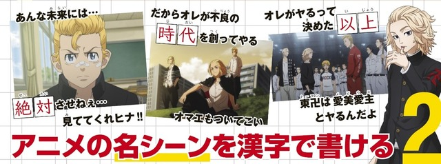 在这一两年非常火红,由和久井健创作的漫画《东京复仇者》,结合暴走族、科幻穿越、悬疑和动作等元素,推出动画后人气高涨,连带漫画也销量爆棚,真人电影版也热卖。近日讲谈社宣布,将推出以《东京复仇者》为主题的「小学生汉字学习专用书」,给小学 1~6 年纪的朋友学习汉字并复习,希望在教育上能够给予适当支援,让小孩的教育效果提升。