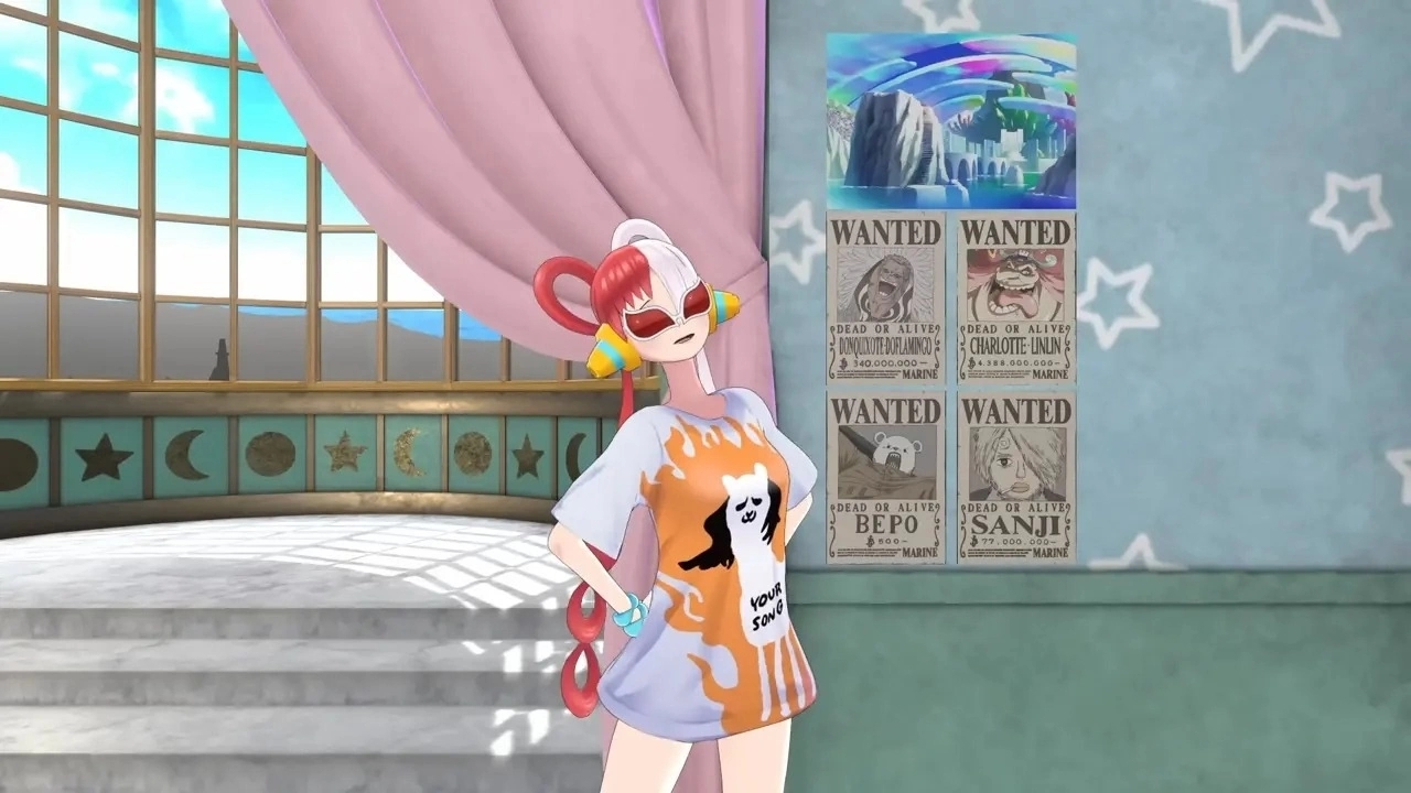 美音是红发杰克的女儿,所以决定隐藏自己的身分、以歌声向世界宣示自己的存在,也因此成为了被世人爱着的歌姬,在音乐之岛「艾利吉亚」上举办期望已久的首次演唱会,剧中为美音配音的是名塚佳织,而代唱则是歌手 Ado。