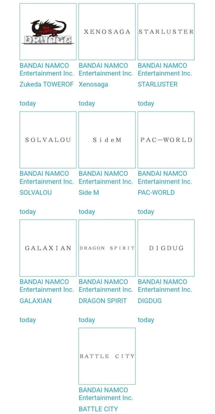 Reddit 用户LongJonSilver 发现BANDAI NAMCO近日为一些经典游戏申请了新商标,总共13款,包含《坦克大战》、《GALAXIAN》等。