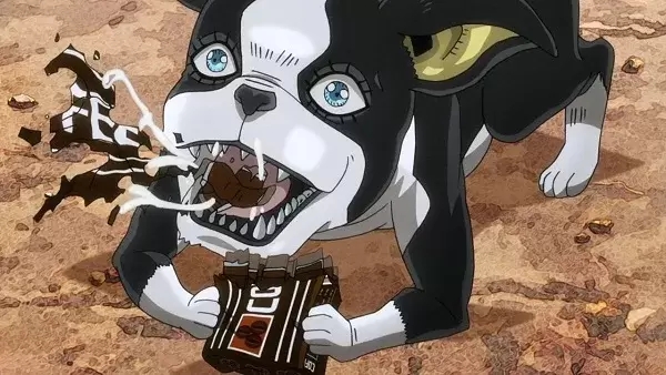 虽然是一只狗却有着替身能力,虽说在荒木老师笔下,现实中可爱的波士顿犬变得有些奔放(?),但伊奇依然以吉祥物般的姿态、以及不屈不挠的黄金精神收获了许多粉丝的人气。至于伊奇最喜欢的点心,就是那个「咖啡口香糖」(千万不要给普通的狗狗吃啊)。