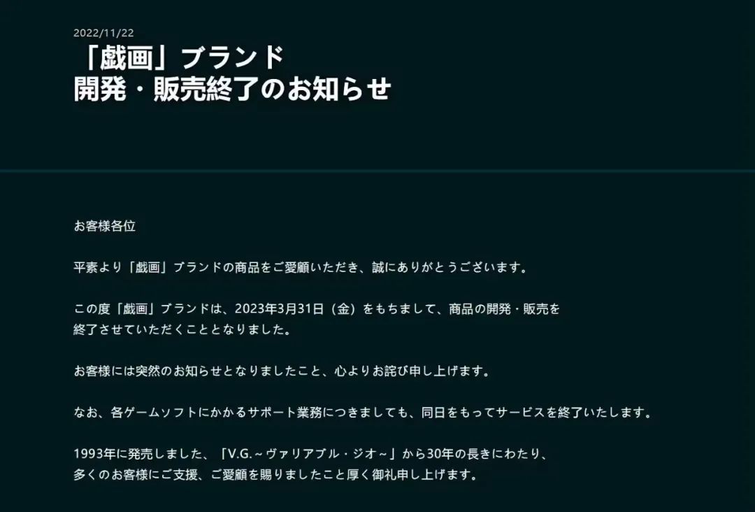 至今已有30年历史的“戏画”会社近日宣布停止galgame开发与贩卖,也就是说过完今年差不多就要解散了,又一元老级别的会社倒闭了~~业界真药丸?