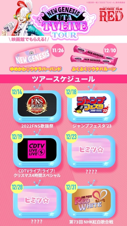 《航海王剧场版:红髮歌姬》中诞生的美音,将在 12月19日 播出的「CDTV Live!Live!圣诞节四小时特别节目(CDTVライブ!ライブ!クリスマス4时间スペシャ儿)」演出。