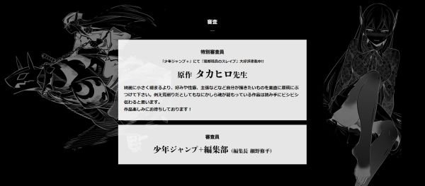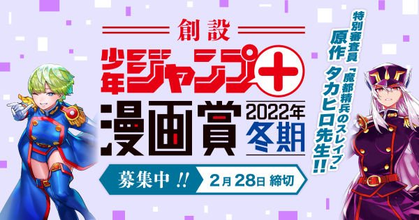 集英社宣布由今年2月开始举办的「少年Jump+漫画赏」的冬季时段开放招募稿费,并宣佈今次的特别审查的漫画家身份。