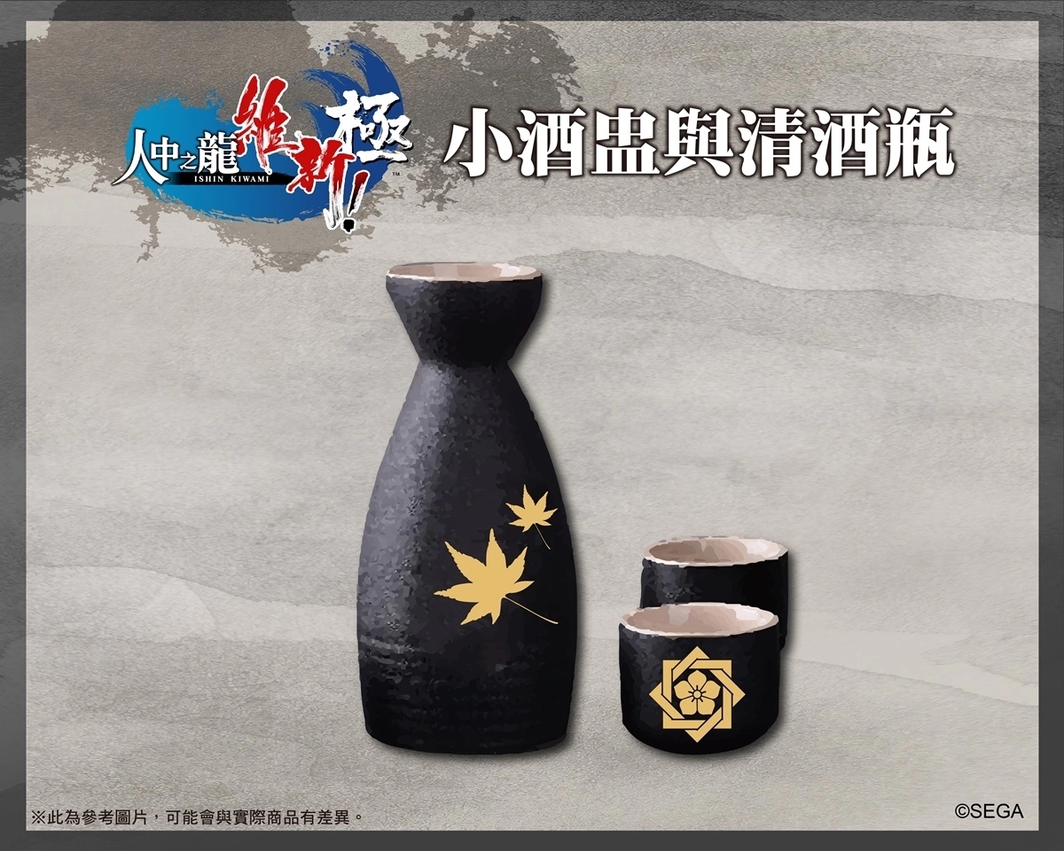 此次限定版特制的小酒盅与清酒瓶,在瓶身採用主视觉中飘散的枫叶做设计,并在两个小酒盅上绘出坂本龙马与斋藤一的家纹,宛如幕末的光与影在此对饮。