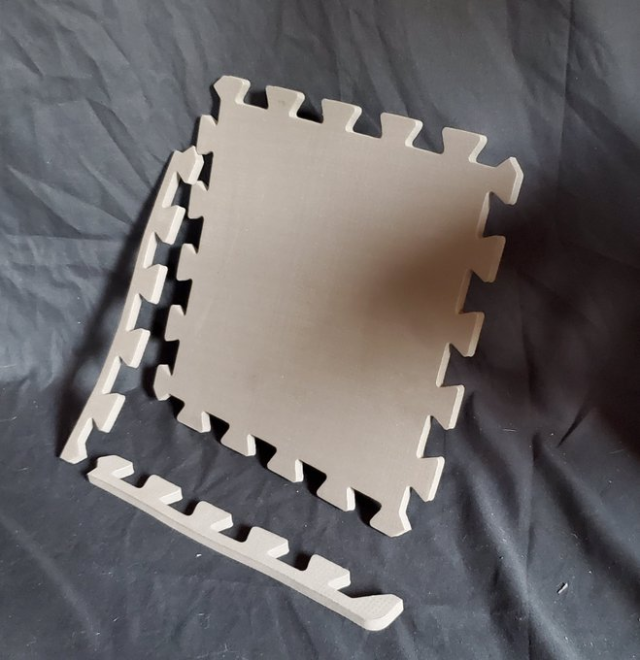 他所使用的就是这个我们日常生活中常见的「巧拼」,以 EVA 材质制成具有轻巧又能缓冲撞击的特性,便于携带又能保护儿童游玩安全,相信不少有孩子的电电伙伴都会放置在家中。