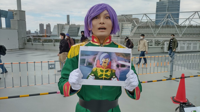 而这次真田悠除了经典足球一幕外,也出了《机动战士钢弹》的卡尔玛·萨比,这也是他非常喜欢的角色之一,更是想尝试还原卡尔玛那经典张嘴惊讶的一幕 XD。