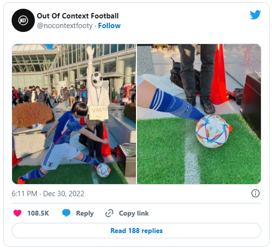 而他这个有趣的 Cosplay,还被海外的足球推特帐户转推,传到国际粉丝眼里 XD。