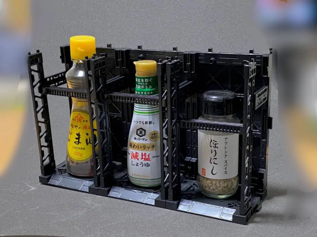 爱好组装模型的推主鰐军壮,这个在百元商店购入的展示架其实并不是为了酱料特别买的,而是当初拿来装载模型的时候尺寸不合,意外在需要摆放酱料的东西时才发现可以使用,当作再利用 XD。