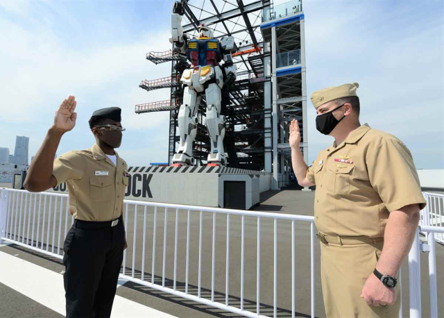 熟悉日本的朋友应该都了解,直至今日,还是有美国军队驻扎在日本境内,所以在日本境内还是有许多美国军人生活在其中。而最近在日本横滨,实施了该地美军重新入伍的仪式,不过居然是在『GUNDAM FACTORY YOKOHAMA』 的实物大钢弹前进行,让不少网友感到惊奇。