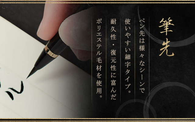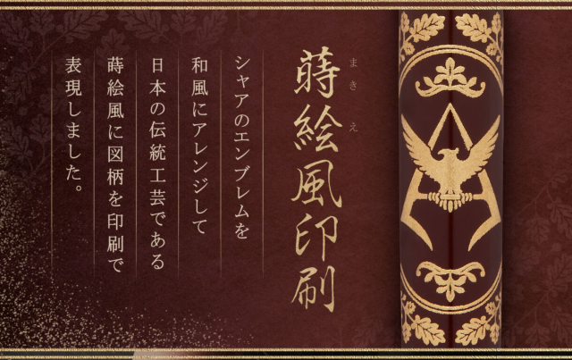 这次在笔的外观上,采用日本传统工艺的莳绘风,结合夏亚的专属标志与红金配色,展现出独特又具奢华感的视觉效果。毛笔笔体为尖细型,使用起来方便好写,耐久性上十分出色,写起来的手感绝对值得一试。