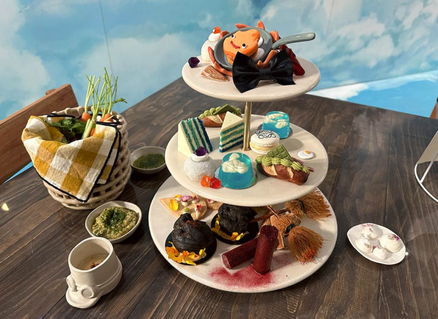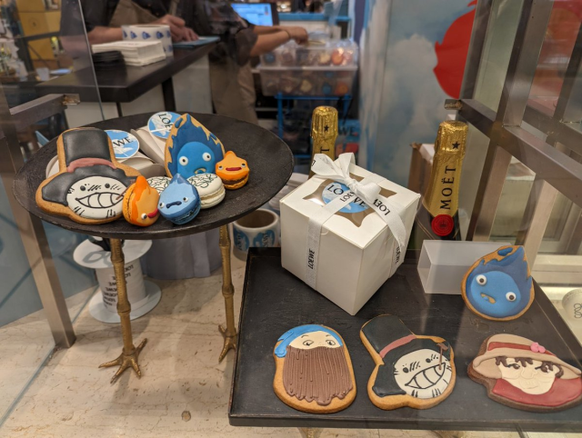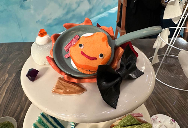 这是与英国下午茶店铺 Calcifer’s Kitchen 合作的咖啡厅,将下午茶餐点融合作品特色制作出美味且亮眼的样貌。店内直接摆设了《哈尔的移动城堡》动画的牆面外,更有许多场景设计直接让人感受到联名咖啡厅的不凡之处,更有联名服饰商品展示在周围。