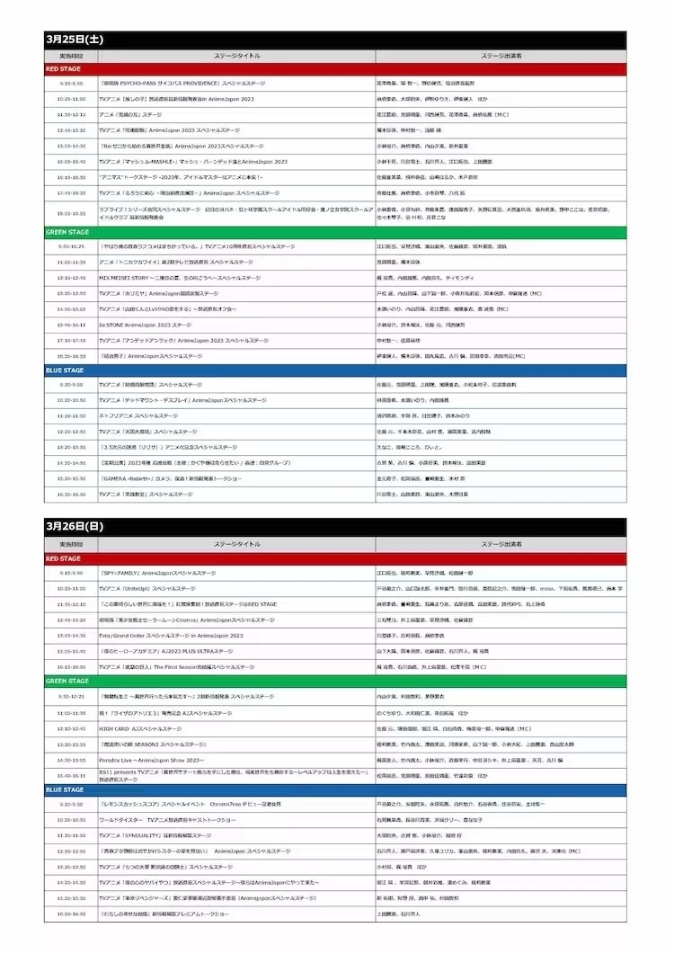 将于 3月25日、3月26日 两日举行的「Anime Japan 2023」活动,公开了活动时程表、更新登场嘉宾名单。