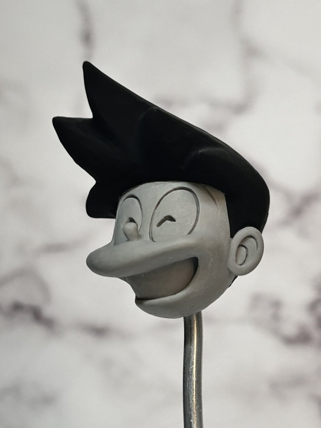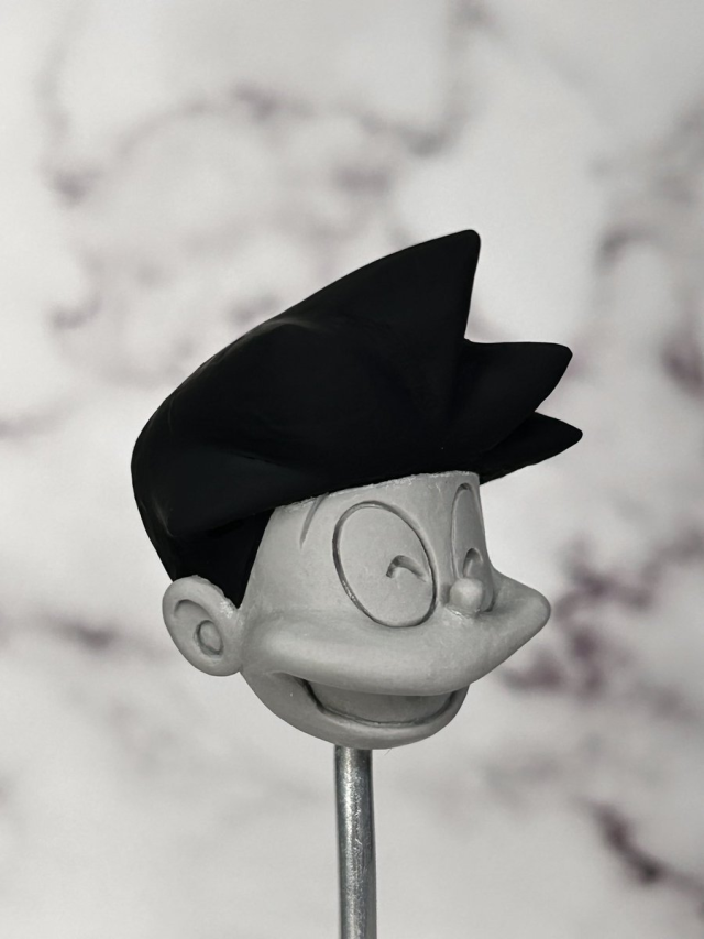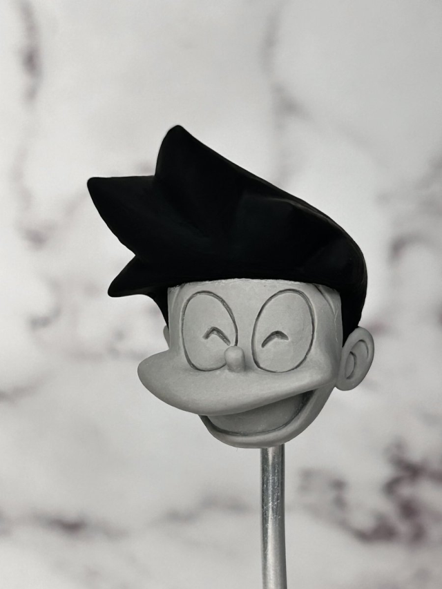而模型造型师-榎木之もひで ( @eyewater_e ) 看到了这样的讨论,决定尝试制作看看,透过涂装技巧与光反射的技术,让这个小夫的头发能在任何一个角度看都可以保持完美。从影片展示的效果来看,的确怎么摆动,小夫的头发看起来都很 OK,也应证了其实这「立体化」是可能的。