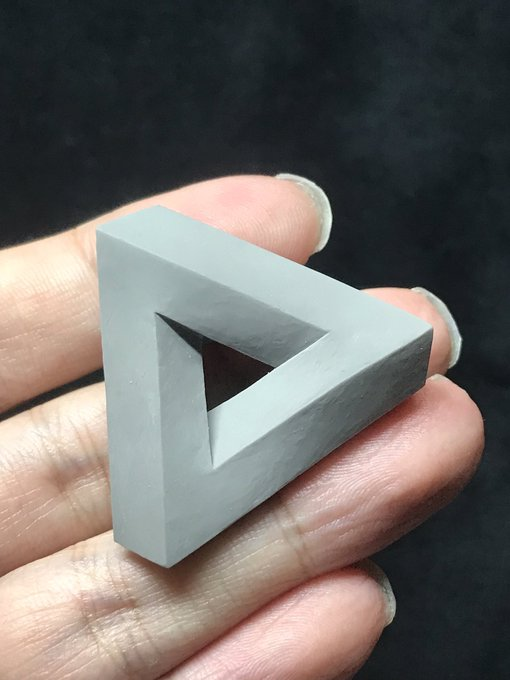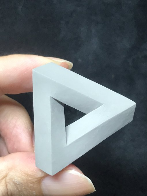 不过他也制作过被喻为不可能物体中一种的「潘洛斯三角」(Penrose triangle),将其立体化,或许榎木之もひで还会挑战更多不可能也说不定 XD,让我们期待看看他未来的作品吧 !